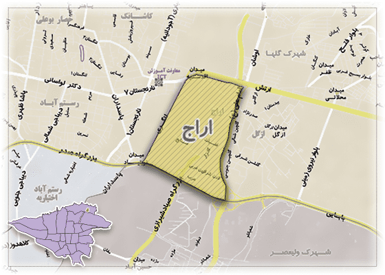 اراج یکی از مناطق شمالی تهران است که با مناطق ازگل، مینی سیتی، ارتش، اقدسیه، لویزان، تجریش، نیاوران هم جوار است.