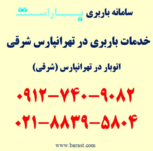 خدمات باربری در تهرانپارس شرقی، اتوبار در تهرانپارس شرقی و حمل اثاثیه منزل تهرانپارس از خدمات باربری شرق تهران (باراست) است. اگر به باربری در تهرانپارس شرقی، خدمات اتوبار در تهرانپارس، حمل بار در محدوده تهرانپارس (شرقی) با باراست، اسباب کشی تهرانپارس شرقی و شماره خدمات باربری در تهرانپارس (باراست) نیاز دارید می‌توانید با تلفن های زیر تماس حاصل فرمایید.