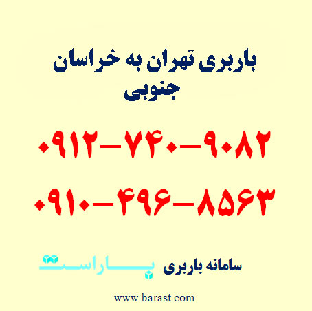 برای سفارش باربری تهران به خراسان جنوبی، حمل بار به خراسان جنوبی و اسباب کشی از تهران به استان خراسان جنوبی میتوانید همه روزه حتی روزهای تعطیل با شماره تلفن های زیر تماس حاصل فرمایید. باراست آماده ارائه انواع خدمات باربری و حمل اثاثیه منزل به شرق کشور به خصوص استان خراسان جنوبی و شهرهای مختلف آن مثل بیرجند، قائن، طبس، نهبندان و دیگر مناطق شهری و روستایی با کمترین قیمت باربری و با بیمه کامل اثاثیه منزل است. امکان ارسال انواع ماشین های باربری نیسان، خاور و کامیون بین شهری به همراه کارگر حمل اثاثیه و بسته بندی به درب منزل و دفتر کار شما امکان پذیر است. برای اطلاع از قمیت دقیق حمل بار و باربری از تهران به خراسان جنوبی با شماره تلفن های زیر تماس حاصل فرمایید.