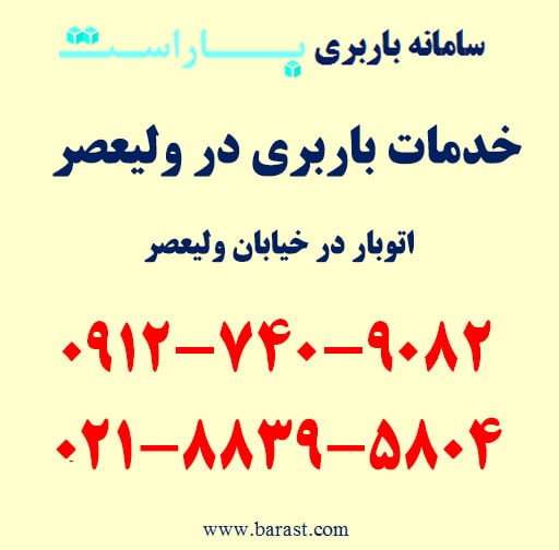 برای سفارش باربری در ولیعصر، اتوبار در ولیعصر، حمل بار در محدوده خیابان ولیعصر و مناطق اطراف با باراست میتوانید همه روزه از ساعت ۹ الی ۱۹ با شماره تلفن های زیر تماس حاصل فرمایید. باراست آماده ارائه انواع خدمات باربری و اسباب کشی در مرکز و شمال تهران به خصوص محدوده ولیعصر، انقلاب، تجریش و مناطق اطراف با کمترین قیمت باربری است. امکان ارسال انواع ماشین باربری نیسان، خاور و کامیون درون شهری و برون شهری به همراه کارگر متخصص حمل اثاثیه منزل و پرسنل حرفه ای به درب منزل و محل کار شما در اسرع وقت امکان پذیر است. برای رزرو تلفنی و اطلاع دقیق از آخرین قیمت باربری و اسباب کشی در ولیعصر (باراست) با شماره تلفن های زیر تماس حاصل فرمایید.