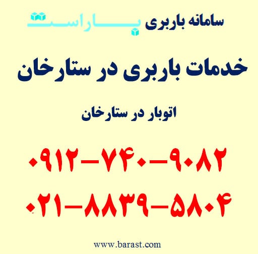 برای سفارش باربری در ستارخان، اتوبار در ستارخان، حمل بار در محدوده ستارخان و مناطق اطراف با باراست میتوانید همه روزه از ساعت ۹ الی ۱۹ با شماره تلفن های زیر تماس حاصل فرمایید. باراست آماده ارائه انواع خدمات باربری و اسباب کشی در غرب تهران به خصوص محدوده ستارخان، تهران ویلا، صادقیه و مناطق اطراف با کمترین قیمت باربری است. امکان ارسال انواع ماشین باربری نیسان، خاور و کامیون درون شهری و برون شهری به همراه کارگر متخصص حمل اثاثیه منزل و پرسنل حرفه ای به درب منزل و محل کار شما در اسرع وقت امکان پذیر است. برای رزرو تلفنی و اطلاع دقیق از آخرین قیمت باربری و اسباب کشی در ستارخان (باراست) با شماره تلفن های زیر تماس حاصل فرمایید.