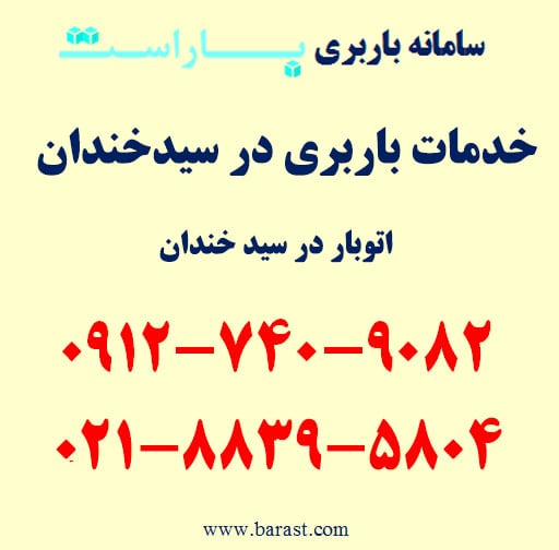 خدمات باربری در سیدخندان، اتوبار در سیدخندان و حمل اثاثیه منزل سیدخندان از خدمات باربری شرق تهران (باراست) است. اگر به باربری در سیدخندان، حمل بار در محدوده شریعتی (سیدخندان) با باراست، اسباب کشی سیدخندان و شماره خدمات باربری در سیدخندان (باراست) نیاز دارید می‌توانید با تلفن های زیر تماس حاصل فرمایید.