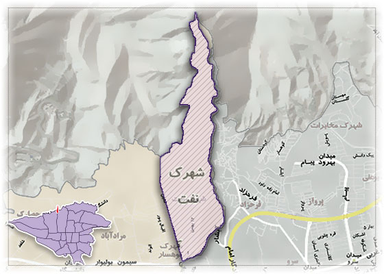 محلهها و شهرکهایی در پایتخت وجود دارد که با یک اسم، در دو نقطه مختلف که بعضا زمین تا آسمان با یکدیگر فاصله دارند، قرار گرفتهاند؛ نمونهاش؟ شهرک نفت. یکی از آنها در محله پونک و دیگری در اتوبان ارتش واقع شده است. محله «نفت» در ناحیه ۳ منطقه ۵ قرار دارد و از شرق به رودخانه فرحزاد، از غرب به خیابان معین، از جنوب به جاده فرحزاد و سیمون بولیوار و از شمال به حریم شمالی منطقه ۵ و کوههای اطراف منتهی میشود. شهرک نفت یکی از جوانترین محلههای شمالی است. تولد آن با 15 پروژه آپارتمانی در سال 1371 اتفاق افتاد اما به سرعت رشد کرد و حالا جمعیت آن با حاشیه دره فرحزاد و برج سبلان و کوی فرهنگیان به 25 هزار نفر میرسد. (منبع) و (منبع) و (منبع)