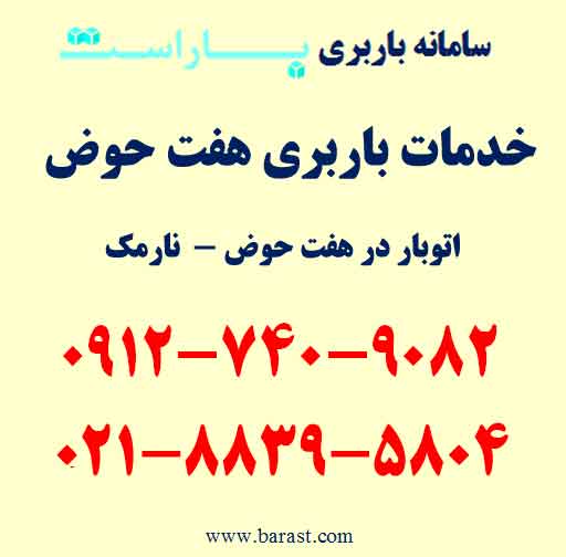 خدمات باربری در هفت حوض، اتوبار در هفت حوض و اسباب کشی هفت حوض تهران از خدمات باربری شرق تهران (باراست) است. اگر به باربری در هفت حوض، اتوبار در هفت حوض، حمل بار در هفت حوض (میدان نبوت) با باراست، باربری در محدوده هفت حوض، حمل اثاثیه منزل هفت حوض و نیسان بار شهرستان و شماره خدمات باربری در هفت حوض تهران (باراست) نیاز دارید میتوانید با شماره تلفن های زیر تماس حاصل فرمایید.