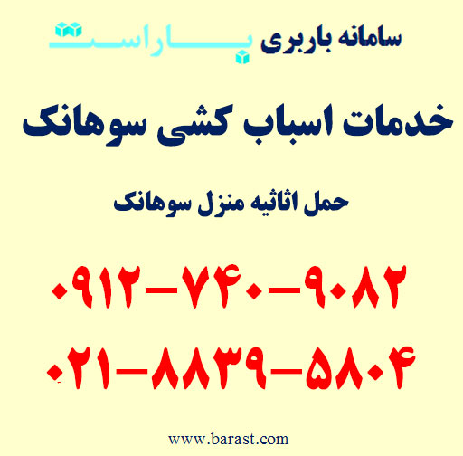 اسباب کشی و حمل اثاثیه و اثاث کشی (باربری سوهانک) با کامیونت های مخصوص اسباب کشی و حمل اثاثیه به همراه کارگر باربری مجرب و کار بلد با قیمت اتوبار و باربری مشخص در سوهانک تهران لازمه یک تجربه باربری خوب است. متأسفانه برخی از باربری ها با اعلام قیمت پایین به درب منزل مشتری مراجعه می کنند و بعد از بارگیری اعلام میکنند که قیمت باربری اعلام شده ساعتی بوده و به ازای هر ساعت بایستی این مبلغ پرداخت شود. بهتر است حتما قبل از بارگیری از راننده اتوبار ، درخواست پیش فاکتور باربری معتبر کنید و با توجه به اینکه راننده در محل بارگیری اتوبار هست و تمامی وسایل و اثاثیه شما را می تواند بررسی کند یک قیمت دقیق باربری در پیش فاکتور لحاظ نماید. ارائه قیمت های نامشخص توسط راننده باربری، دخالت کارگر باربری در قیمت دهی و ایجاد تنش، عدم پاسخگویی شرکت باربری و نظارت بر کارگر و راننده اتوبار همگی از مواردی هستند که شما بایستی مد نظر قرار دهید و بلافاصله از درخواست اتوبار از چنین شرکت هایی صرف نظر کنید. هر چند که بسیاری از شرکت های باربری با وجود تبلیغات باربری زیاد در سایت ها یا مجوز لازم را ندارند و یا کلا بارگیری و سفارش مشتری باربری را انکار می کنند.