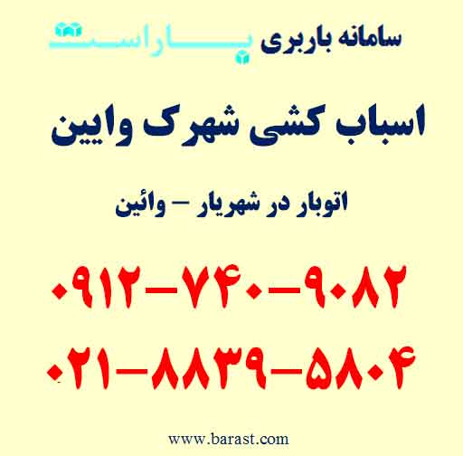 اسباب کشی وائین، حمل اثاثیه منزل و باربری در شهرک وایین با کامیونت های مخصوص اسباب کشی و حمل اثاثیه به همراه کارگر باربری مجرب و کار بلد با قیمت اتوبار و باربری مشخص نیاز شهروندان محترم شهریار است. مجموعه باراست با نظارت کافی و تجهیز ناوگان حمل و نقل اسباب کشی به ردیاب GPS در تمامی مراحل اسباب کشی پاسخگو بوده و با به کارگیری کادر خوش اخلاق و رانندگان با سابقه تمام تلاش خود را جهت رضایت شما مشتریان عزیز به کار می گیرد.