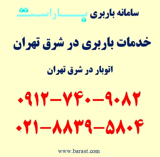 خدمات باربری در شرق تهران، اتوبار در شرق تهران و حمل اثاثیه منزل شرق از خدمات باربری تهران (باراست) است. اگر به باربری در شرق تهران، خدمات اتوبار در نارمک، حمل بار در محدوده تهرانپارس (شرق تهران) با باراست، اسباب کشی شرق تهران و شماره خدمات باربری در شرق (باراست) نیاز دارید میتوانید با تلفن های زیر تماس حاصل فرمایید.