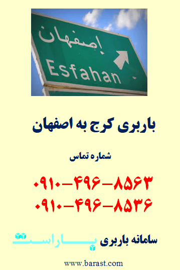 باربری کرج به اصفهان یا باربری کرج اصفهان از خدمات باربری کرج در استان البرز است. باربری کرج به اصفهان شامل هزینه باربری از کرج به اصفهان، حمل بار و اثاثیه از کرج به اصفهان، اسباب کشی از کرج به اصفهان و ارسال بار به اصفهان است. برای باربری کرج به اصفهان با شماره های زیر تماس بگیرید. قیمت باربری کرج به اصفهان در ادامه آمده است.