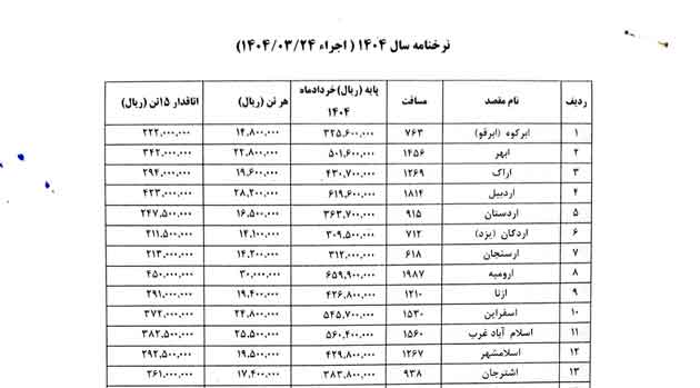 دانلود PDF نرخ کرایه حمل بار از مبدا بندرعباس 1404
