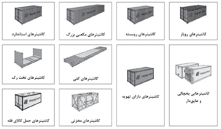 در حمل ونقل بین المللی انواع کانتینر وجود دارد که میتوان به موارد زیر اشاره کرد. (منبع)