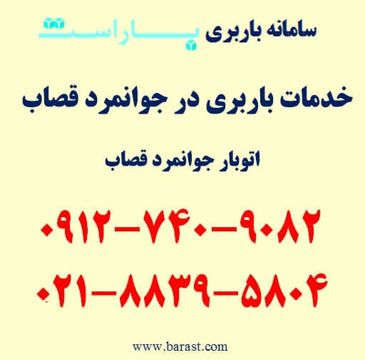 برای سفارش باربری در جوانمرد قصاب، اتوبار در جوانمرد قصاب، حمل بار در محدوده جوانمرد قصاب و مناطق اطراف با باراست میتوانید همه روزه از ساعت ۹ الی ۱۹ با شماره تلفن های زیر تماس حاصل فرمایید. باراست آماده ارائه انواع خدمات باربری و اسباب کشی در جنوب تهران به خصوص محدوده جوانمرد قصاب، شهرری، حومه و مناطق اطراف با کمترین قیمت باربری است.