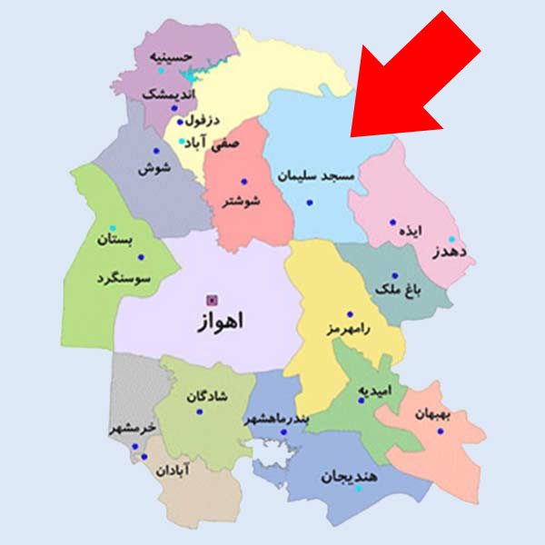 مَسجِدسُلِیمان مرکز شهرستان مسجدسلیمان در استان خوزستان است. پس از عملیات استخراج صنعتی نفت که در سال ۱۹۰۸ با حفر چاه شماره یک انجام شد، این شهر بتدریج در اطراف این میدان نفتی شکل گرفت. اغلب مردم این شهر از مردم بختیاری میباشند. از دیدنیهای این شهر میتوان به اولین چاه نفتی در خاورمیانه، دامنه کوه آسماری، تفرجگاه تمبی، آتشکده سرمسجد و پرستشگاه برد نشانده که بزرگترین معبد روباز هخامنشی در ایران و جهان است، اشاره کرد. (منبع)