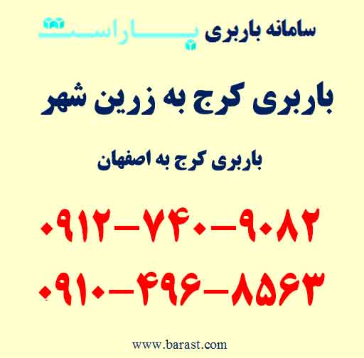 باربری کرج به زرین شهر، حمل بار به زرین شهر از خدمات باربری کرج به شهرستان در باراست است. برای باربری کرج به زرین شهر (اصفهان)، هزینه حمل بار از کرج به زرین شهر با باراست، حمل اثاثیه منزل به زرین شهر و شماره خدمات باربری کرج به زرین شهر (باراست) با تلفن های زیر تماس بگیرید