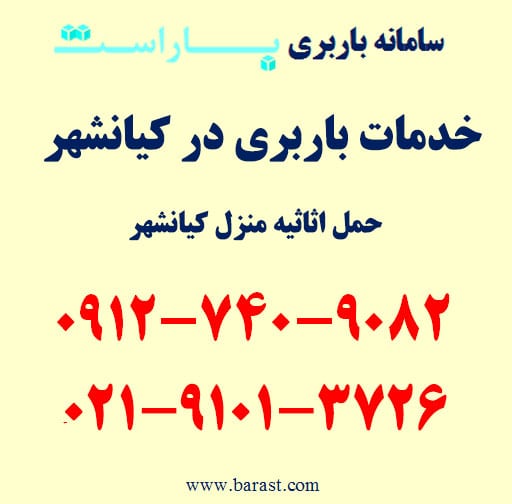 برای سفارش باربری در کیانشهر،‌ اتوبار در کیانشهر، حمل بار در محدوده کیانشهر تهران و مناطق اطراف با باراست می‌توانید همه روزه از ساعت ۹ الی ۱۹ با شماره تلفن های زیر تماس حاصل فرمایید. باراست آماده ارائه انواع خدمات باربری و اسباب کشی در جنوب تهران به خصوص محدوده کیانشهر، شهرری و مناطق اطراف با کمترین قیمت باربری است. امکان ارسال انواع ماشین باربری نیسان، خاور و کامیون درون شهری و برون شهری به همراه کارگر متخصص حمل اثاثیه منزل و پرسنل حرفه ای به درب منزل و محل کار شما در اسرع وقت امکان پذیر است. برای رزرو تلفنی و اطلاع دقیق از آخرین قیمت باربری و اسباب کشی در کیانشهر (باراست با شماره تلفن های زیر تماس حاصل فرمایید.