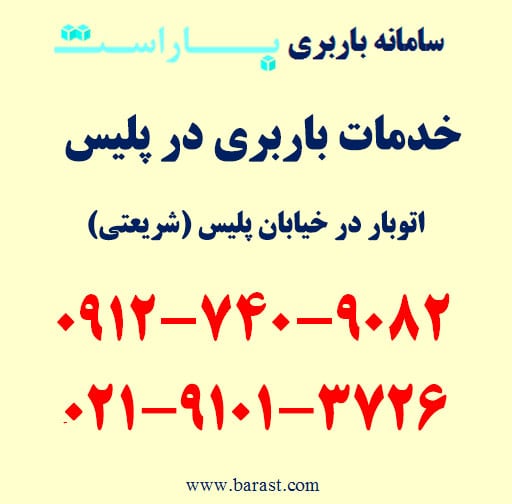 برای سفارش باربری در پلیس،‌ اتوبار در پلیس، حمل بار در محدوده پلیس تهران و مناطق اطراف با باراست می‌توانید همه روزه از ساعت ۹ الی ۱۹ با شماره تلفن های زیر تماس حاصل فرمایید. باراست آماده ارائه انواع خدمات باربری و اسباب کشی در شرق تهران به خصوص محدوده پلیس، قصر، شریعتی و مناطق اطراف با کمترین قیمت باربری است. امکان ارسال انواع ماشین باربری نیسان، خاور و کامیون درون شهری و برون شهری به همراه کارگر متخصص حمل اثاثیه منزل و پرسنل حرفه ای به درب منزل و محل کار شما در اسرع وقت امکان پذیر است. برای رزرو تلفنی و اطلاع دقیق از آخرین قیمت باربری و اسباب کشی در پلیس (باراست با شماره تلفن های زیر تماس حاصل فرمایید.