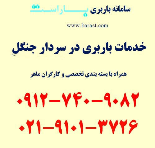 برای سفارش باربری در سردار جنگل، اتوبار در سردار جنگل، حمل بار در محدوده سردار جنگل تهران و مناطق اطراف با باراست میتوانید همه روزه از ساعت ۹ الی ۱۹ با شماره تلفن های زیر تماس حاصل فرمایید. باراست آماده ارائه انواع خدمات باربری و اسباب کشی در غرب تهران به خصوص محدوده سردار جنگل و مناطق اطراف با کمترین قیمت باربری است. امکان ارسال انواع ماشین باربری نیسان، خاور و کامیون درون شهری و برون شهری به همراه کارگر متخصص حمل اثاثیه منزل و پرسنل حرفه ای به درب منزل و محل کار شما در اسرع وقت امکان پذیر است. برای رزرو تلفنی و اطلاع دقیق از آخرین قیمت باربری و اسباب کشی در سردار جنگل (باراست) با شماره تلفن های زیر تماس حاصل فرمایید.