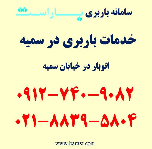 خدمات باربری در سمیه، اتوبار در سمیه و حمل اثاثیه منزل سمیه از خدمات باربری جنوب تهران (باراست) است. اگر به باربری در سمیه، خدمات اتوبار در خیابان سمیه، حمل بار در محدوده طالقانی (سمیه) با باراست، اسباب کشی سمیه و شماره خدمات باربری در سمیه (باراست) نیاز دارید میتوانید با تلفن های زیر تماس حاصل فرمایید.