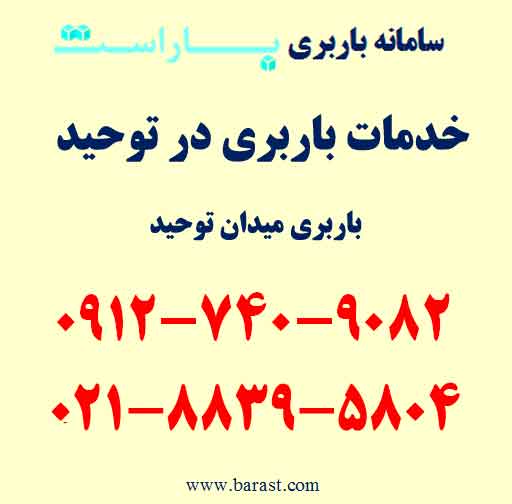 خدمات باربری در میدان توحید، اتوبار در توحید و حمل اثاثیه منزل توحید از خدمات باربری غرب تهران (باراست) است. اگر به باربری در توحید، خدمات اتوبار در میدان توحید، حمل بار در محدوده ستارخان (توحید) با باراست، اسباب کشی میدان توحید و شماره خدمات باربری در توحید (باراست) نیاز دارید می‌توانید با تلفن های زیر تماس حاصل فرمایید.